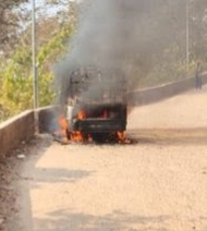 कोरबा जिले के मड़वारानी पहाड़ पर मंगलवार दोपहर एक हादसा होते-होते बच गया। पहाड़ की चढ़ाई के दौरान अचानक चलती ऑटो में आग लग गई। ऑटो में सवार परिवार ने तुरंत नीचे कूदकर अपनी जान बचा ली। इस घटना में कोई घायल नहीं हुआ, लेकिन ऑटो पूरी तरह जल गया।