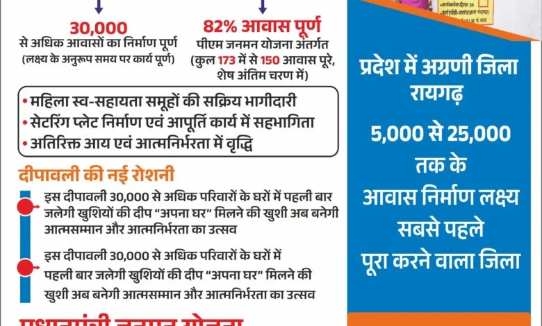 रायगढ़ का यह दीपोत्सव केवल दीपों का नहीं, बल्कि सरकारी योजना की संवेदनशीलता और जनता की उम्मीदों के मिलन का पर्व होगा। इन 30 हजार से अधिक घरों की चमक में छिपा है प्रशासन की निष्ठा, हितग्राहियों की मेहनत और उस सपने की पूर्ति, जो हर गरीब परिवार ने कभी अपने लिए देखा था।