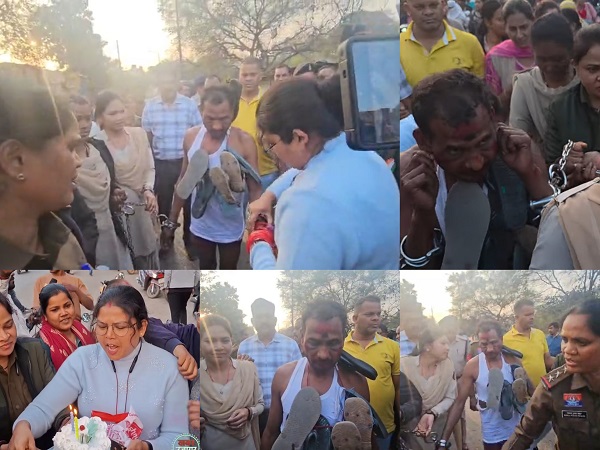 रायगढ़।रायगढ़ जिले के तमनार क्षेत्र में महिला पुलिसकर्मी के साथ बदसलूकी के मामले में पुलिस की कार्रवाई लगातार जारी है। वर्दी फाड़ने और अभद्र व्यवहार के इस प्रकरण में वीडियो वायरल होने के बाद पहले ही पांच आरोपियों को गिरफ्तार किया जा चुका था। सोमवार को पुलिस ने मुख्य छठे आरोपी चित्रसेन साव को पडीगांव, तमनार से गिरफ्तार कर उसका जुलूस निकाला। जुलूस के दौरान महिला पुलिसकर्मियों ने आरोपी को जूते-चप्पलों की माला पहनाई, चूड़ियां पहनाकर प्रतीकात्मक विरोध जताया और फटाके फोड़कर आक्रोश व्यक्त किया।