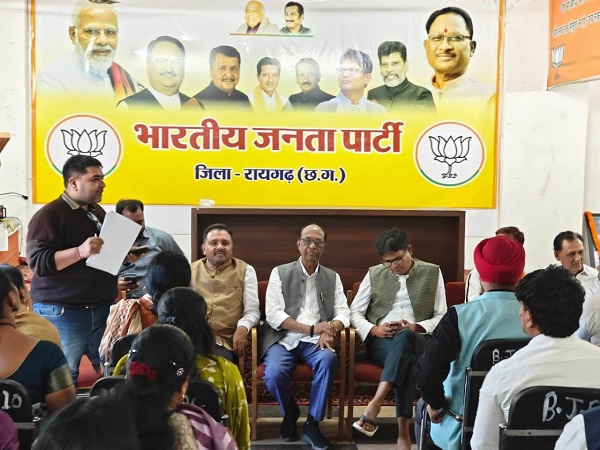 रायगढ़। जिला भाजपा कार्यालय रायगढ़ मे नगर निगम के भाजपा पार्षदो, और छाया पार्षदों के साथ कामकाजी बैठक में प्रदेश के वित्त मंत्री रायगढ़ विधायक ओपी चौधरी के साथ,रायगढ़ पुर्व विधायक विजय अग्रवाल,महापौर जीवर्धन चौहान भाजपा नेता प्रदेश कार्यकारणी सदस्य विवेक रंजन सिन्हा जिला भाजपा महामंत्री विकाश केडिया भाजपा वरिष्ठ नेता मुकेश जैन वरिष्ठ नेता श्रीकांत सोमावार सभी जिला प्रदाधिकारी शामिल हुए।