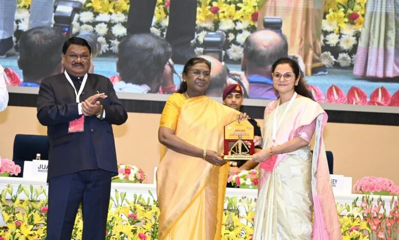 रायपुर, 19 अक्टूबर 2025/ देश की राजधानी नई दिल्ली के विज्ञान भवन में आयोजित ‘राष्ट्रीय कॉन्क्लेव ऑन आदि कर्मयोगी अभियान’ में छत्तीगसढ के कोरिया जिले ने एक बार फिर अपनी विकास यात्रा से राष्ट्रीय स्तर पर पहचान बनाई है। भारत सरकार के जनजातीय कार्य मंत्रालय द्वारा आयोजित इस भव्य समारोह में राष्ट्रपति श्रीमती द्रौपदी मुर्मू ने धरती आबा जनजाति ग्राम उत्कर्ष अभियान में उत्कृष्ट कार्यों के लिए कोरिया जिले की कलेक्टर श्रीमती चंदन त्रिपाठी को सम्मानित किया। इस अवसर पर केंद्रीय जनजातीय कार्य मंत्री श्री जुएल ओराम एवं राज्यमंत्री श्री दुर्गा दास उइके भी उपस्थित रहे। कार्यक्रम में छत्तीसगढ़ शासन के प्रमुख सचिव श्री सोनमणि बोरा को भी राज्य स्तर पर उत्कृष्ट प्रदर्शन के लिए राष्ट्रपति के हाथों सम्मान प्राप्त हुआ।