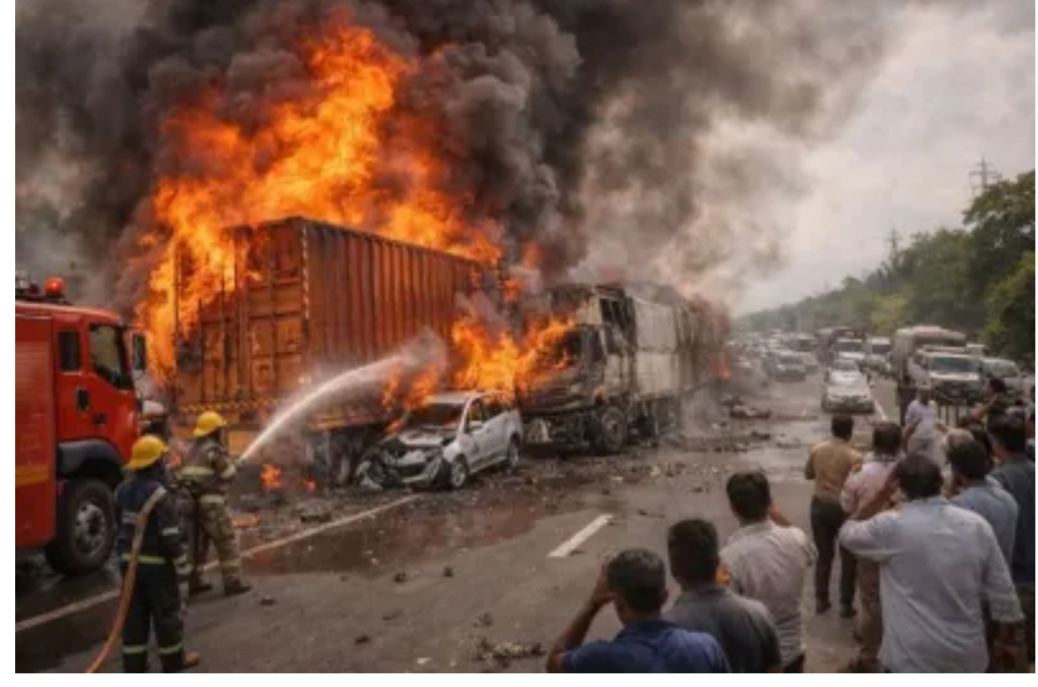 बीजापुर जिले के नेशनल हाईवे-63 पर उस वक्त अफरा-तफरी मच गई, जब चलते ट्रेलर में अचानक भीषण आग भड़क उठी। देखते ही देखते आग ने विकराल रूप ले लिया और पूरा ट्रेलर आग की लपटों में घिर गया, जिससे हाईवे पर लंबा जाम लग गया।
