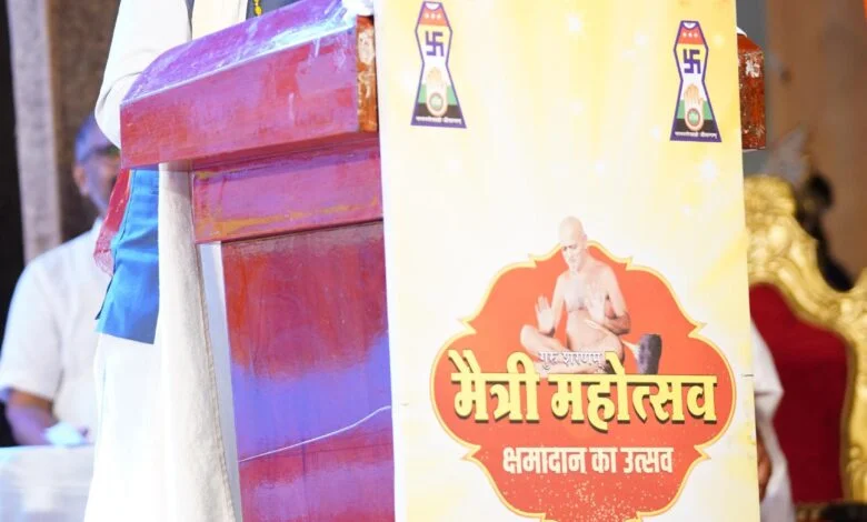 रायपुर, 28 सितम्बर 2025। मुख्यमंत्री श्री विष्णु देव साय आज राजधानी रायपुर में सकल दिगम्बर जैन समाज द्वारा आयोजित मैत्री महोत्सव में शामिल हुए। पंडित दीनदयाल उपाध्याय ऑडिटोरियम में पूज्य आर्यिकारत्न 105 अंतर्मति माताजी ससंघ के मंगल सान्निध्य में आयोजित गुरु शरणम् – मैत्री महोत्सव – क्षमादान उत्सव में विधायक श्री राजेश मूणत, जैन समाज के पदाधिकारियों सहित बड़ी संख्या में गणमान्य नागरिक उपस्थित थे।