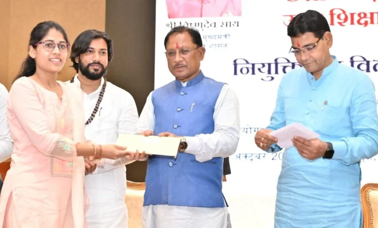 मुख्यमंत्री श्री साय ने कहा कि प्रदेश के युवाओं को पुलिस विभाग, विद्युत विभाग, सहकारिता विभाग, लोक स्वास्थ्य यांत्रिकी विभाग, आदिम जाति विकास विभाग सहित कई अन्य विभागों में नियुक्तियाँ दी जा रही हैं। उन्होंने कहा कि आने वाले समय में उच्च शिक्षा विभाग में 700 सहायक प्राध्यापकों और स्कूल शिक्षा विभाग में 5000 शिक्षकों की भर्ती की जाएगी।