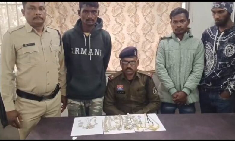 शहर में सूने मकानों को निशाना बनाकर चोरी की वारदातों को अंजाम देने वाले तीन शातिर चोरों को कोतवाली पुलिस ने गिरफ्तार करते हुए नकबजनी के दो मामलों का खुलासा किया है। पुलिस ने आरोपियों के कब्जे से सोने-चांदी के जेवरात समेत करीब ₹5 लाख 16 हजार की संपत्ति बरामद की है।